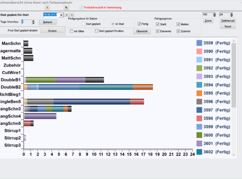 Basierend auf diesen Daten und Ihren individuellen Prioritäten erfolgt eine automatische Maschinenzuteilung mit Plausibilitätsprüfung für jede einzelne Position. Eine manuelle Umverteilung genauso wie eine Übersicht der Maschinenauslastung steht selbstverständlich auch zur Verfügung.